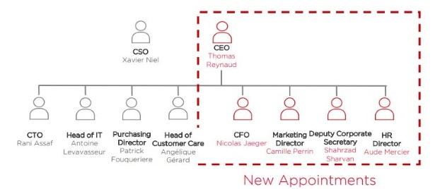 Par ailleurs, la direction générale échoit à Thomas Reynaud, en remplacement de Maxime Lombardini qui, après 11 ans à ce poste, devient président du conseil d’administration, en charge des relations avec les pouvoirs publics. L’idée générale étant de réunir les « fondateurs historiques » (Xavier Niel, Rani Assaf, Antoine Levavasseur, Cyril Poidatz, qui devient secrétaire général) et de nouveaux talents pour « faire face aux nouveaux défis du Groupe et à l'inscrire dans une nouvelle dynamique de croissance pour les années à venir ».