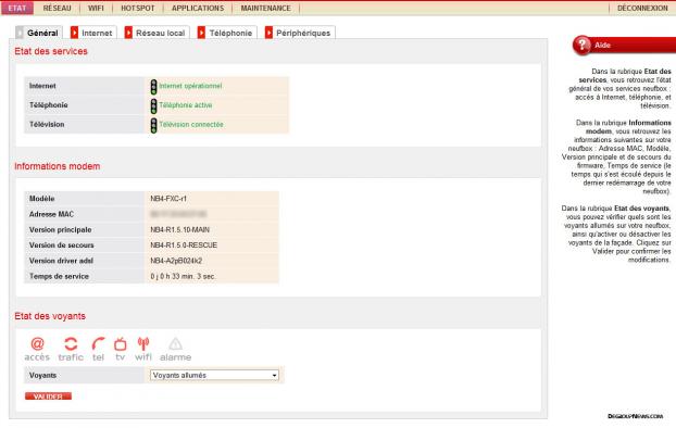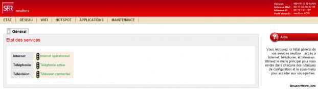 Le premier menu dans la console d'administration de la neufbox (la partie Etat) est purement informatif. A ce titre, il s'avère plutôt clair et riche en renseignements.