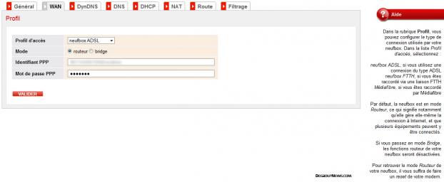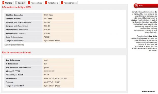 L'onglet suivant, WAN, nous donne des informations sur la connexion Internet utilisée par la neufbox.