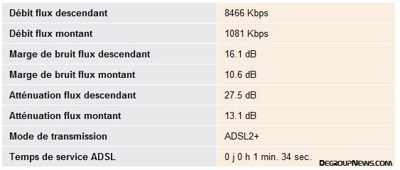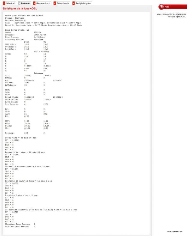 Attention : cette page est dévoilée à titre informatif et on vous conseille de ne modifier que la partie « marge de bruit ». Changer les autres paramètres de la page pourraient avoir des conséquences néfastes sur votre connexion.