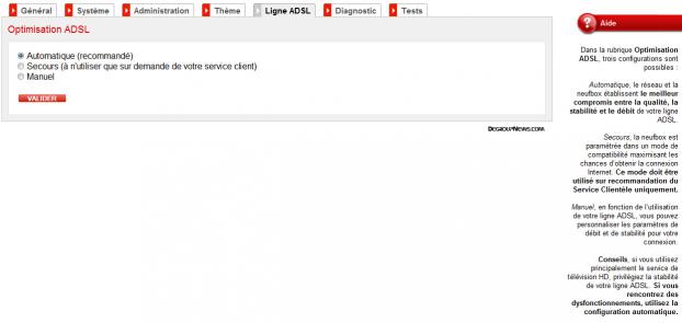 Au final, il s'avère que le mode automatique de la box trouve le meilleur compromis entre vélocité, réactivité et stabilité. Les six choix de la configuration manuelle permettent d'optimiser légèrement la connexion, surtout si on cherche un ping plus faible au détriment du débit. Mais l'interface de la neufbox recèle une page cachée permettant d'influer un peu plus sur la connexion.