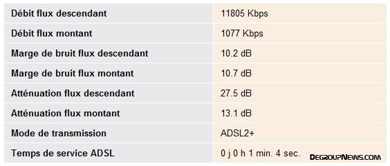 La synchronisation de la neufbox nous permettrait donc d'atteindre plus de 11000 kb/s en voie descendante et plus 1000 kb/s en voie montante, soit des valeurs différentes de ce que nous révèle le test de DegroupTest. La neufbox tiendra-t-elle ses promesses en termes de débits ? C'est ce que nous allons découvrir sans plus tarder.