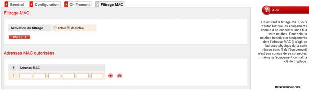 On regrette que SFR n'ait pas encore mis la neufbox au goût du jour avec une possibilité de sécuriser son réseau sans fil en WPA2 alors que les box concurrentes le proposent. Afin de pallier le manque de sécurisation du signal, il faudra passer par la case du filtrage MAC.
