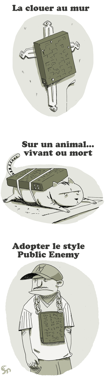 Notre graphiste a donc imaginé plusieurs solutions qui permettent de faire en sorte que le disque dur de 250 Go avec fonction NAS que renferme le Freebox Server ne soit pas « destiné à être posé sur un meuble ».