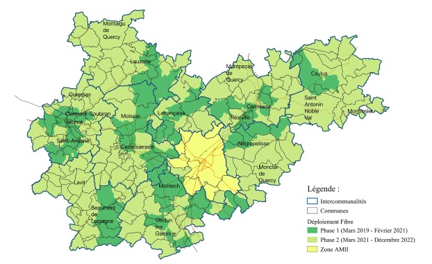 Dans le cadre de cette DSP de 30 ans, la société de projet Octogone Fibre mise sur pied par Altitude se chargera du déploiement de la fibre optique sur l'intégralité du département, moins 8 communes. Celles où la construction du réseau est assurée par Orange sur fonds privés, dans le cadre de ses engagements de déploiement en zone AMII, sur le secteur de Montauban et son agglomération.
