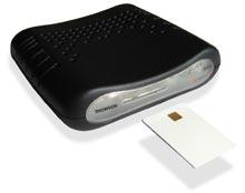 - Insérez votre carte d'abonnement dans le lecteur de carte situé en face avant du décodeur.