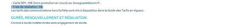 Dès lors, il est naturel de questionner l'appellation sans engagement de ces forfaits. En effet, ils ne vous offriront plus cette liberté de partir gratuitement à tout moment, puisque, quand vous voudrez changer de forfait, il faudra s'acquitter d'une somme de 5€ pour résilier ce dernier.