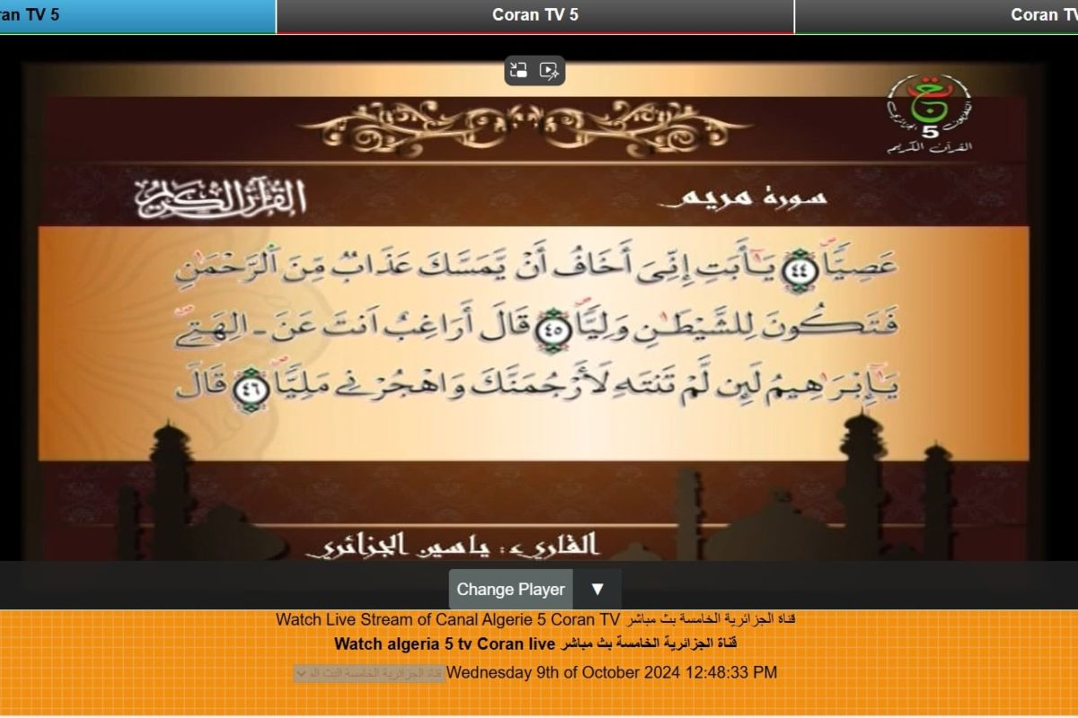 - Les programmes religieux tels que ceux diffusés sur TV Coran.
